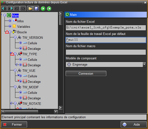 L’arbre de lecture permet de configurer la lecture des données du fichier Excel.
