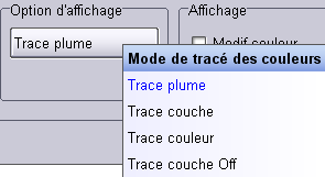Trace couleur Cette option permet d’afficher à l’écran tous les éléments de dessin en fonction de leur attribut de "Couleur".
