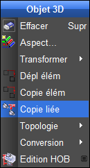 Si un paramètre différenciateur d'une entité appartenant à un ensemble de clones est modifié, le système demande si on veut « décloner » cette entité. Dans ce cas, et s'il existe une mise en plan liée, le système demande si il faut la dupliquer. Lors de la modification du nom d'un clone non nommé, tous les clones de la même famille héritent du nom. Les clones liés Les clones liés sont une famille d'objets 3D ou de composants 3D. Un clone lié est créé à partir de la fonction « Copie liée », qui est accessible au travers du menu contextuel d’un objet 3D ou d’un composant 3D.