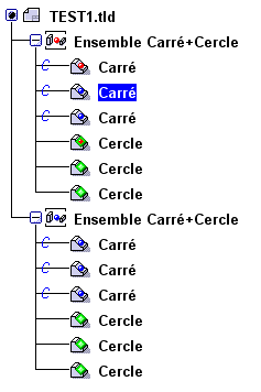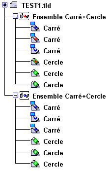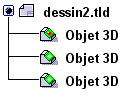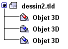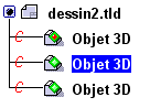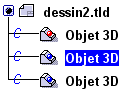 Pour une famille de clones Lorsqu’une mise en plan est générée pour un objet 3D appartenant à une famille de clones, les icônes des objets 3D de la même famille sont également marqués avec le rectangle bleu indiquant qu’une mise en plan existe pour l’objet. C’est le clone de référence qui est porteur de la mise en plan liée.