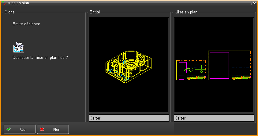 Lorsqu'un clone lié est isolé et que la familles de clones a une mise en plan liée, le système propose de dupliquer la mise en plan (affichée en prévisualisation), avant de demander le nouveau nom du clone.