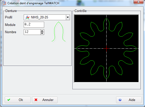 Cette fonction permet de créer dans Creo dans un document de type Pièce une courbe esquissée d'une dent d'engrenage. Cette courbe peut être utilisée pour tailler des dentures.