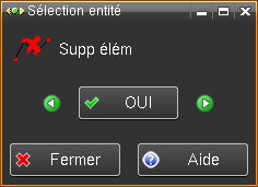 Permet de supprimer l'élément sélectionné. Cette fonction prend en compte tous les types d'éléments. On passe d'un élément à l'autre avec Elém préc et Elém suiv. L'élément sélectionné est mis en évidence et une confirmation par OUI est demandée pour le supprimer.