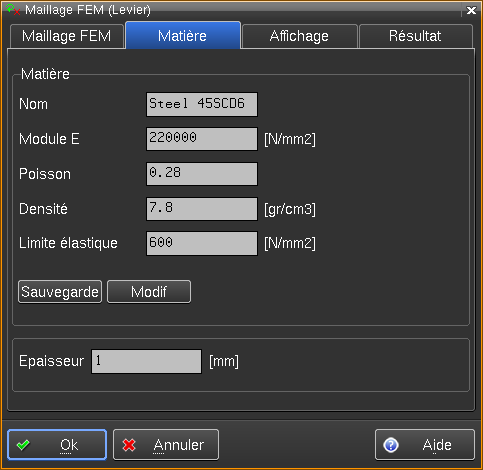 Permet d'afficher et de modifier les paramètres par défaut des maillages FEM.