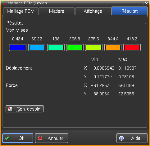 Visualisation de la représentation des forces et génération du tableau d'affichage du ressort dans le dessin.