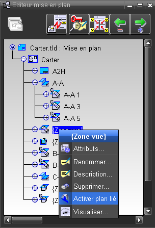 Cette fonction permet aussi de réactiver dans le modèle 3D un plan utilisé dans une mise en plan pour définir une zone vue avec une ligne de coupe, par exemple.