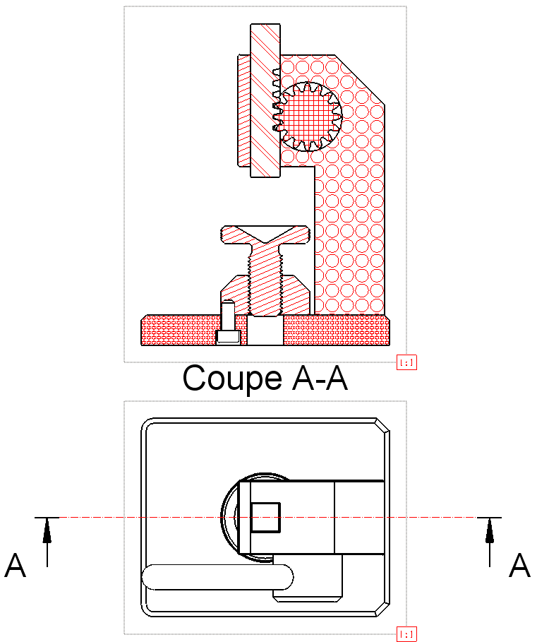 Priorités Le motif coupe de la fonction 1196, associé à l'objet, a priorité sur tous les autres critères : l'éventuelle matière associée à l'objet (fonction 894), et les paramètres de zone vue si on est dans une mise en plan (voir les hachures et motifs de coupe).