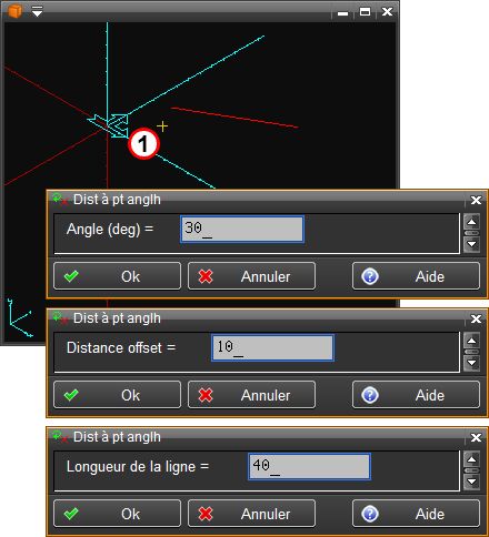 Permet de créer une ligne 3d relative à un point sélectionné en entrant les valeurs de l'angle, de l'offset et de la longueur de la ligne.