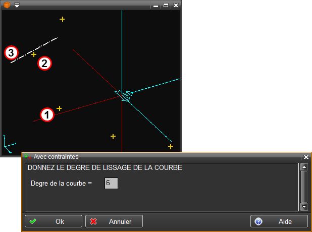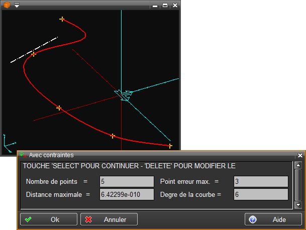 On commence par sélectionner le set de points. Ensuite on sélectionne le point sur lequel on désire ajouter une contrainte, puis on sélectionne l'entité qui imposera la contrainte de tangence sur le point.