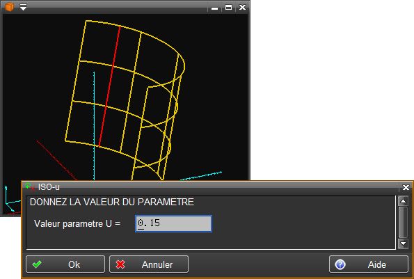 Entrée de la valeur isoparamétrique U ou sera générée la courbe.