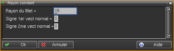 Permet de créer un raccord de rayon constant entre deux carreau ou surfaces. Sélection des deux carreau ou surfaces.