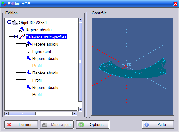 Cette fonction permet de créer un balayage 3D multi-profils ou « multi-sweep », avec un ou des profils 2D et selon une trajectoire.