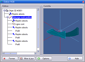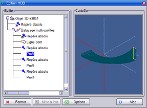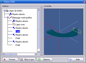Arbre du Multi-Sweep Celui-ci comporte la trajectoire (si celle-ci est fixe) et les profils. Modification du Multi-Sweep •Lancement de l'interface •Edition de la trajectoire Pour éditer la trajectoire, il faut éditer le premier contour sous le « multi-sweep ».