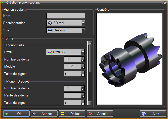 Visserie , Goupille , Tenon , Barrette , Cinématique horlogère , Sélection->engrenage , Pivot , Bouchon , Pierre , Engrenage , Diamant , Figer , Came , Composant utilisateur , Entretoise , Guillochage , Engrenage intérieur , Déplacement ensemble compo , Composant élévation , Composant révolution