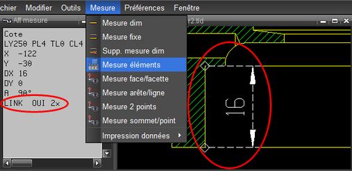 Mesure dim et Mesure fixe Les Mesures fixes sont conservées dans les Zones vue même si on quitte temporairement l'édition de la mise en plan. Mesure éléments La fonction Mesure éléments agit dans les Zones vue sur le 2D et le 3D : •sur les entités d'habillage, elle indique si l'entité est liés à une entité 3D du dessin : « LINK OUI »