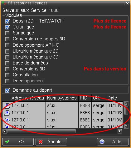 Licences Affichage automatique des licences utilisées avec le serveur de licences lorsqu'elles ne sont plus disponibles.