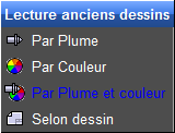 Voir la fonction Licences utilisateur . Mode de lecture des anciens dessins Un nouveau mode de lecture par 'plume et couleur' a été ajouté pour permettre la lecture des couleurs de plumes et les couleurs des anciens dessin. La couleur des plumes est affectée aux largeurs et les 50 couleurs des versions précédentes sont mappées sur les couleurs 11 à 61. Ce mode n'est fonctionnel que si la fonction Couleurs par largeur est activée.