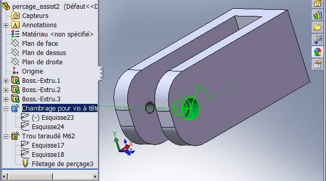 Traitement de la fonction "Perçage assisté" (Assistant de perçage) dans la lecture des objets SolidWorks vers Tell .