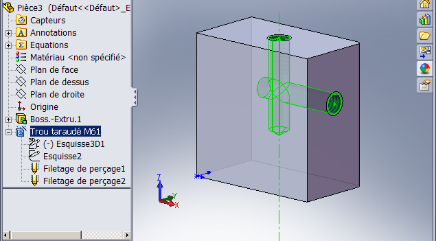 Traitement de la fonction "Perçage simple" dans la lecture des objets SolidWorks vers Tell .
