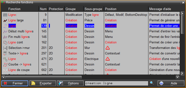 Arrêt de Windows XP La version Tell 2016 n'est plus supportée sous Windows XP. Liste des fonctions Génération de la liste des fonctions avec sélections possibles des options et recherche d'une fonction dans la liste. Cette fonction permet une recherche dans la liste des fonctionnalités de Tell, d'exécuter une fonction trouvée ou de connaître son emplacement dans les menus. La fonction est accessible depuis le menu Aide ou en mode raccourcis avec un double clic avec la touche Shift.