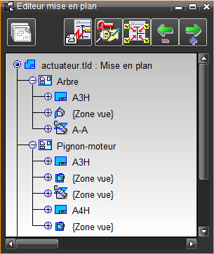 Voir Mesure mise en plan . Fenêtre « Éditeur de mises en plan » Accès facilité à l'éditeur de mises en plan depuis l'éditeur de pièces. Voir Fenêtre pièces .