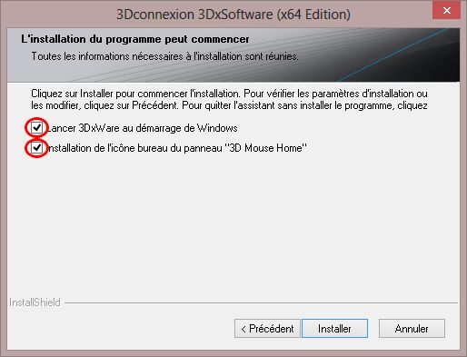 Les drivers pour Windows XP, Windows Vista, Windows 7 et Windows 8 pour 32 et 64 bits sont disponibles dans le répertoire tools\3dconnexion du CD d'installation ou sur le site de la société 3dconnexion http://www.3dconnexion.fr .