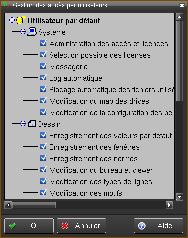 Cet outil permet de définir, pour chaque utilisateur, les droits d'accès aux modules et fonctionnalités de Tell.