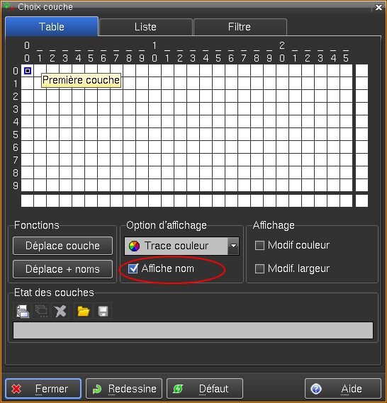L’affichage interactif des noms de couche est disponible par l'activation de la case "Affiche nom".
