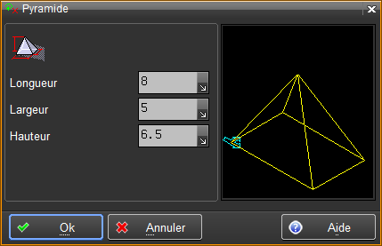 Permet de créer une primitive pyramide dans le plan de travail courant.