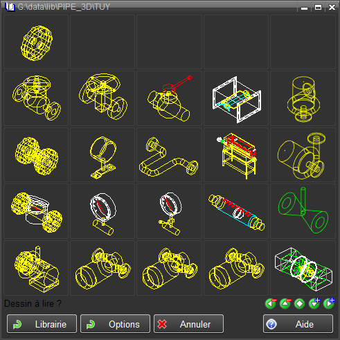 Cette fonction permet de modifier la librairie des pièces de tuyauterie utilisée par défaut pour les fonctions Ajouter pièce depuis lib et Insère pièce.