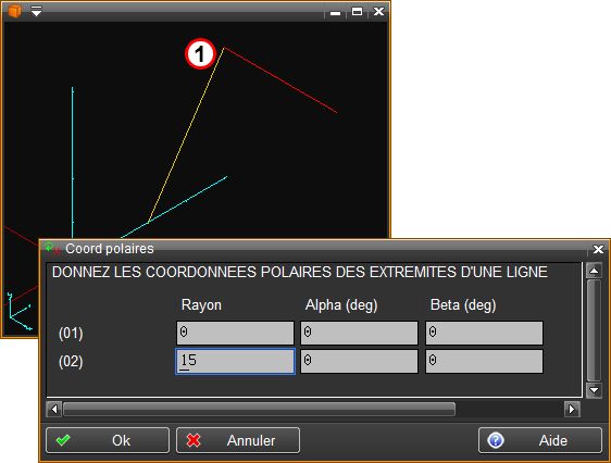 Permet de créer une ligne 3d en donnant les coordonnées polaires relatives à un point des deux sommets.