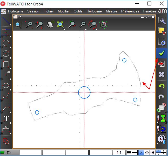 Cette fonction permet de créer dans un document de type Pièce une courbe dans Creo à partir des entités 2D de Tell via un fichier DXF. Cet outil est optionnel et doit être commandé auprès d'AiM Services.