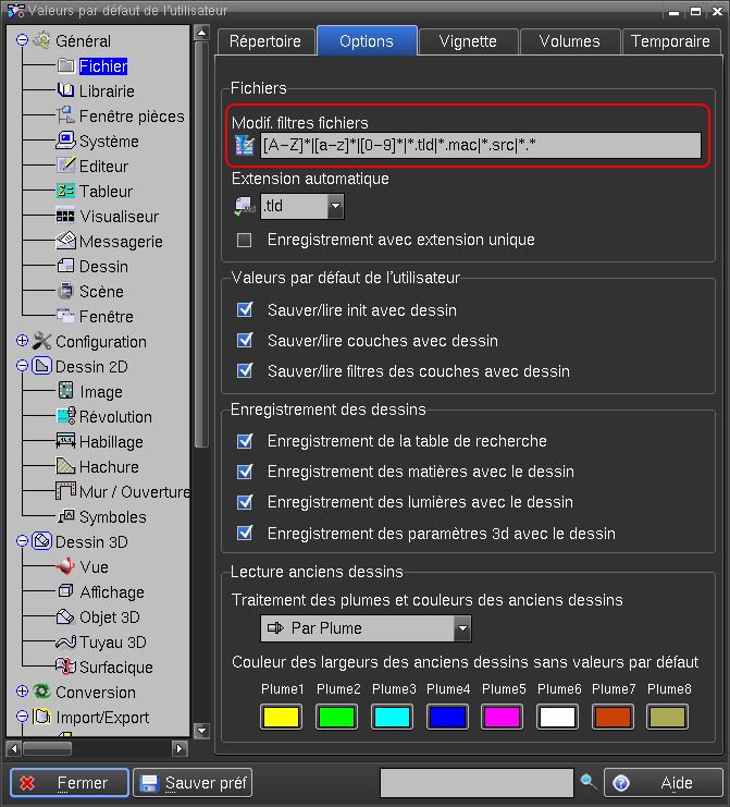 Permet de définir les paramètres utilisés pour les filtres lors d'affichage de fichiers: