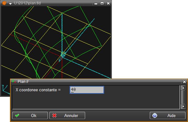 Permet de positionner le plan de travail parallèle à une distance donnée au plan de travail courant.
