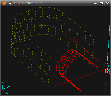 Cette fonction termine la combinaison des transformations initiées par la fonction Combinaison et applique les transformations sur les entités pointées. Dans notre exemple une rotation/OX et un changement d'échelle de 0,5.