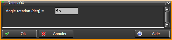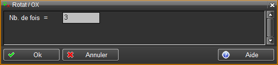 Cette fonction permet plusieurs copies en rotation d'un angle spécifié autour de l'axe X des entités pointées.